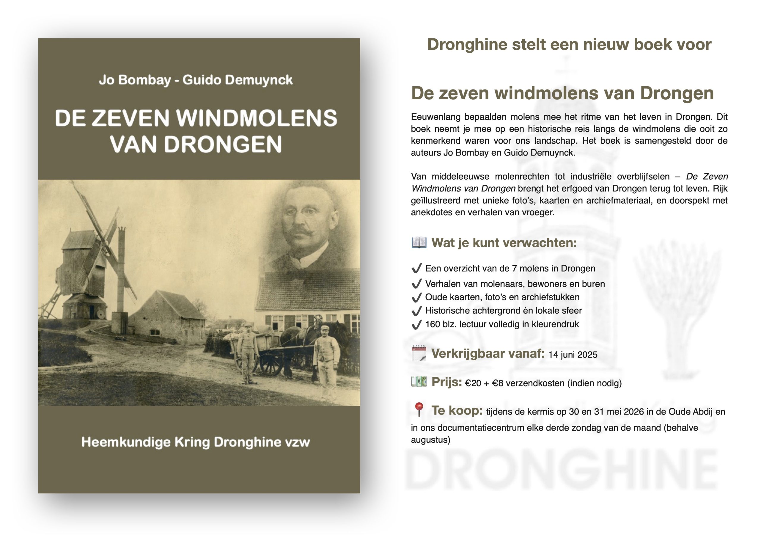 De Heemkundige Kring Dronghine is hier sinds 1947 actief met het onderzoek naar de geschiedenis, de geografie en het dagelijks leven van de Drongenaars. Wij hebben daardoor een rijk gedocumenteerd archief en een verzameling van heemkundige objecten, fotomateriaal en typische Drongense relicten opgebouwd.
